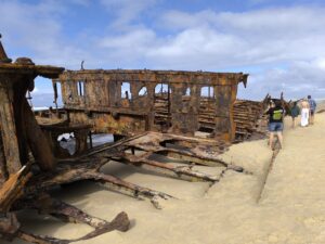 Also a few seconds later the new owner of our booked house, Dade showed up. She confirmed that we are at the right address and told the previous owner rented the house as a BnB, but Dade owns the house over 12month now. In meantime it is 5pm, it gets dark. And we realize we still do not have an accommodation. The cleaning lady give her phone to my hand: Here this is another beach house not far from here for 200$ a night, we negotiate 180$, but it is still winter holiday and typically no vacancy anywhere. So we thankfully declined the offer, since Nick recommended in meantime a Motel no far and also directly at the beach. Once we arrive at the Motel also the no vacancy sign is directly at the entry. But, lets have a try. So I went to the reception. Explain the lady our story and she says, you are lucky. We have indeed a room available, but the aircon is not working. That’s why it is free. It is dark, we all are hungry and the room is very nice. So we take it. It turns out that this was destiny. The lady at the reception lives half year in Montafon and is half year down here. So we speak about Bodensee. What a day, and btw we do not like Gimpy, which is on half way.